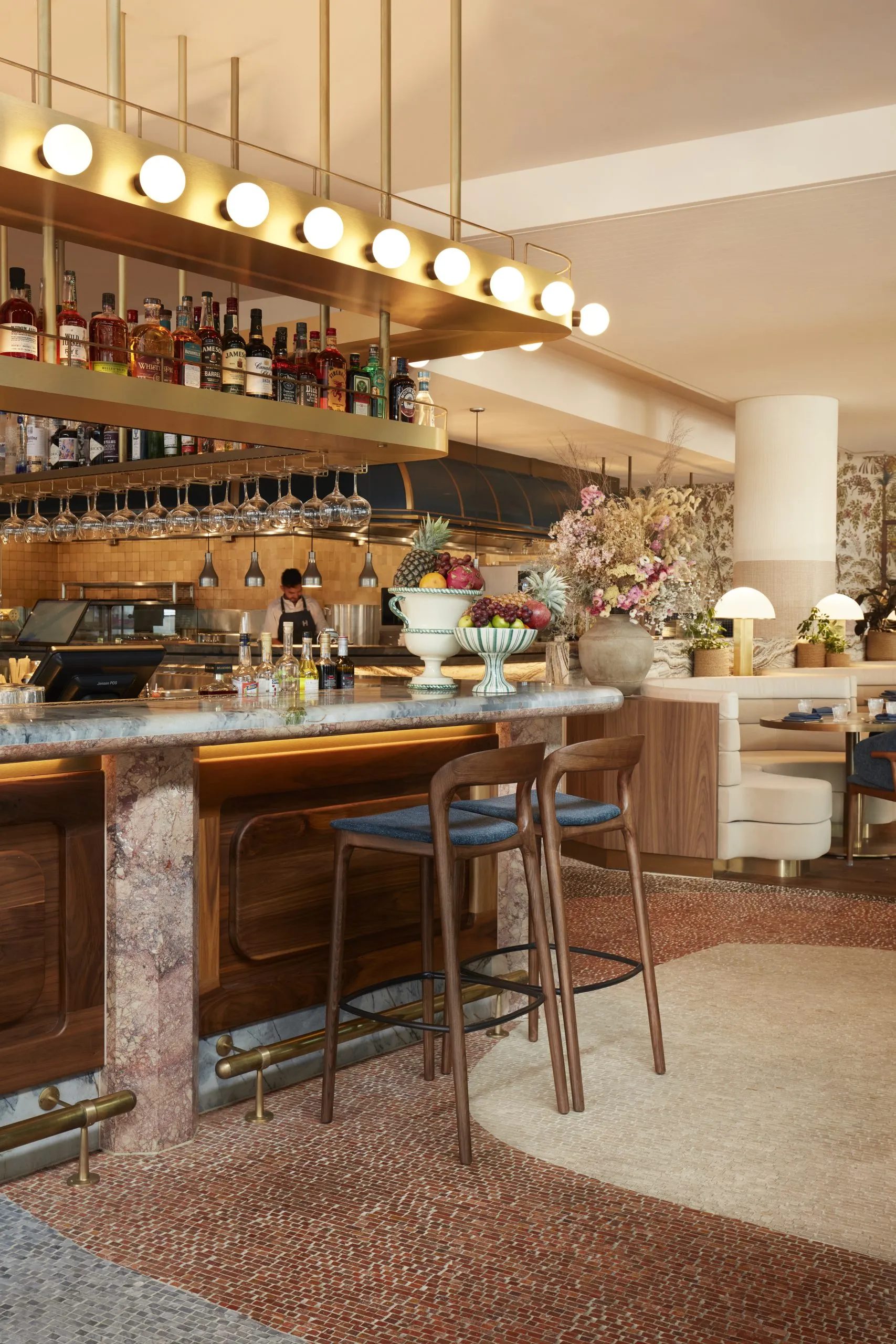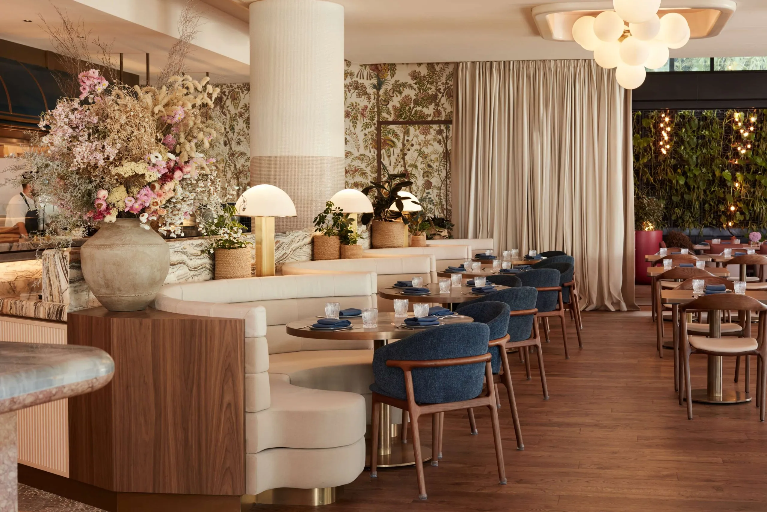 “In the vibrant setting of Humphrey’s Bar, designed by Melissa Collison, Aquaclean fabrics bring a blend of functionality and elegance to the overall design. Their innovative ability to be cleaned effortlessly with just water ensures that the space remains as pristine as it is inviting, tackling everyday stains, making them ideal for a bustling environment”