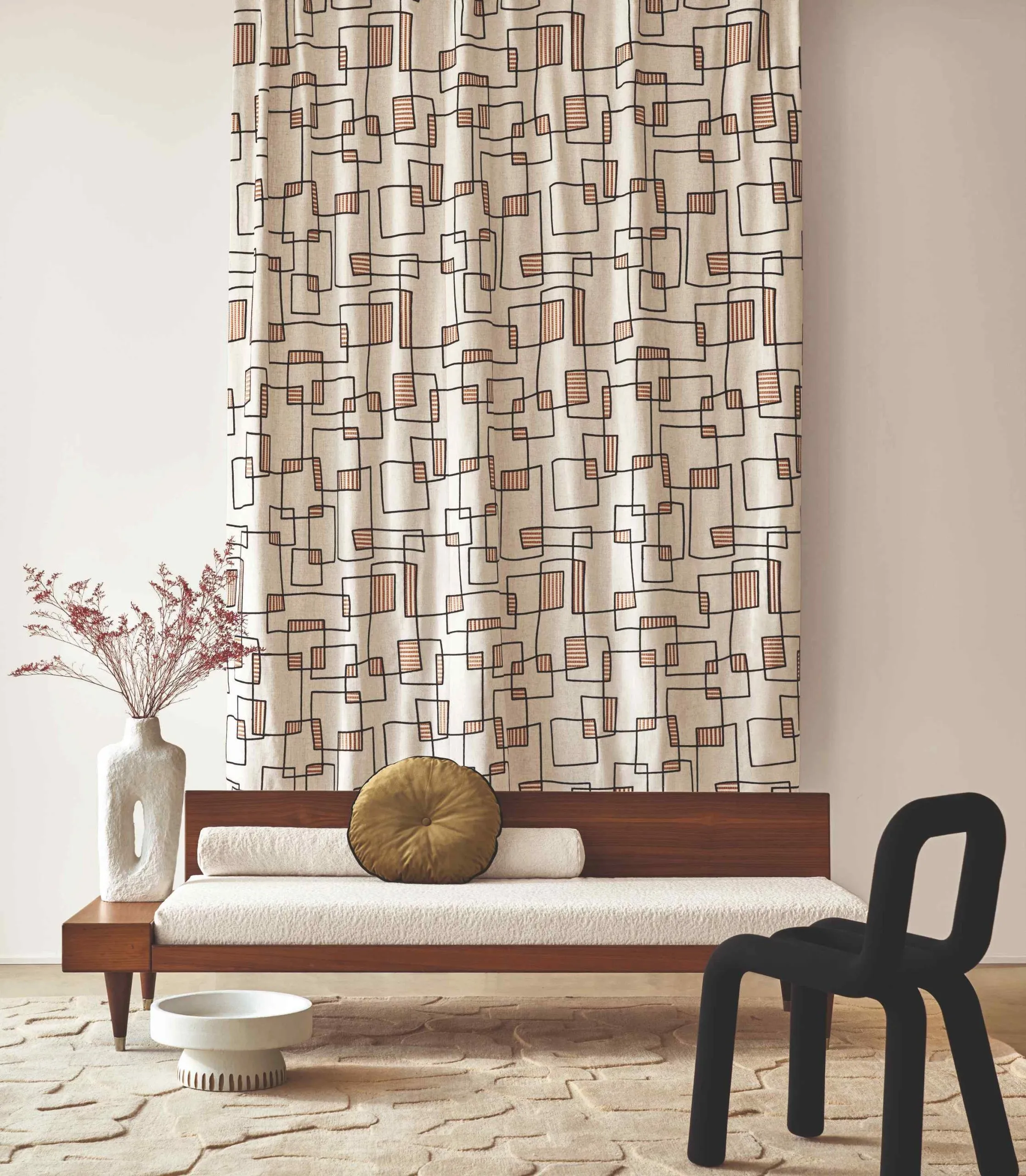 BRISTOPIA reimagines the city as a living canvas, inspired by graffiti, murals, architecture and contemporary sculpture. Bold graphic lines meet soft, organic curves, balancing structure and spontaneity. Colour deepens the story—from warm spicy tones with soft plum and graphic black, to refined bronze with weathered greens, frost-kissed blues balanced by sage and a timeless black-and-white palette softened by natural linen—creating an upholstery collection that is both visually striking and quietly comforting.