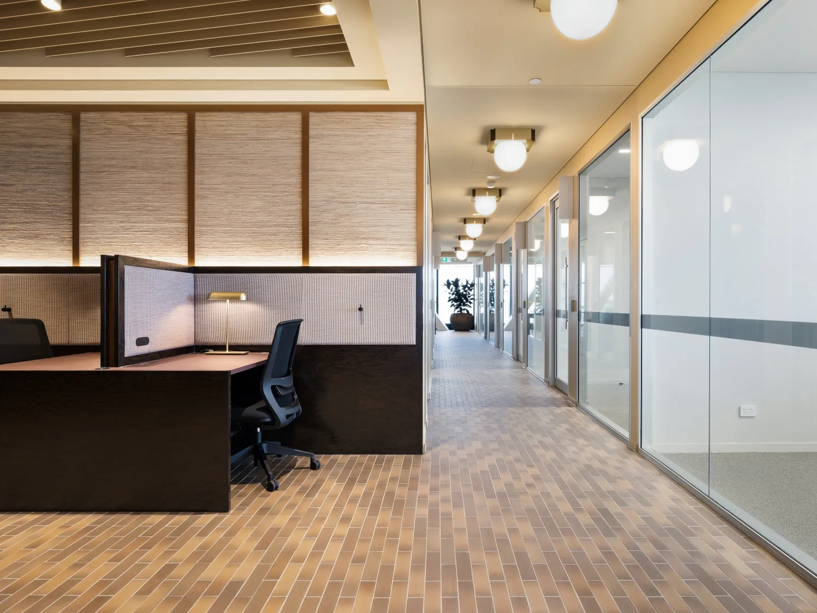 The project’s sustainability criteria were met by incorporating Phillip Jeffries Ltd 3367-Grass Roots, which is used throughout the corridors and common areas of the building.