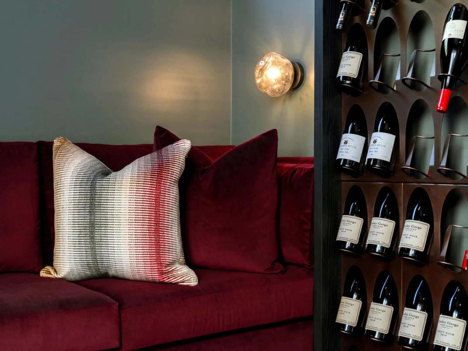 “Sumptuous materials were carefully chosen to envelop this Wine Room, creating an ambience that transcends day and night.