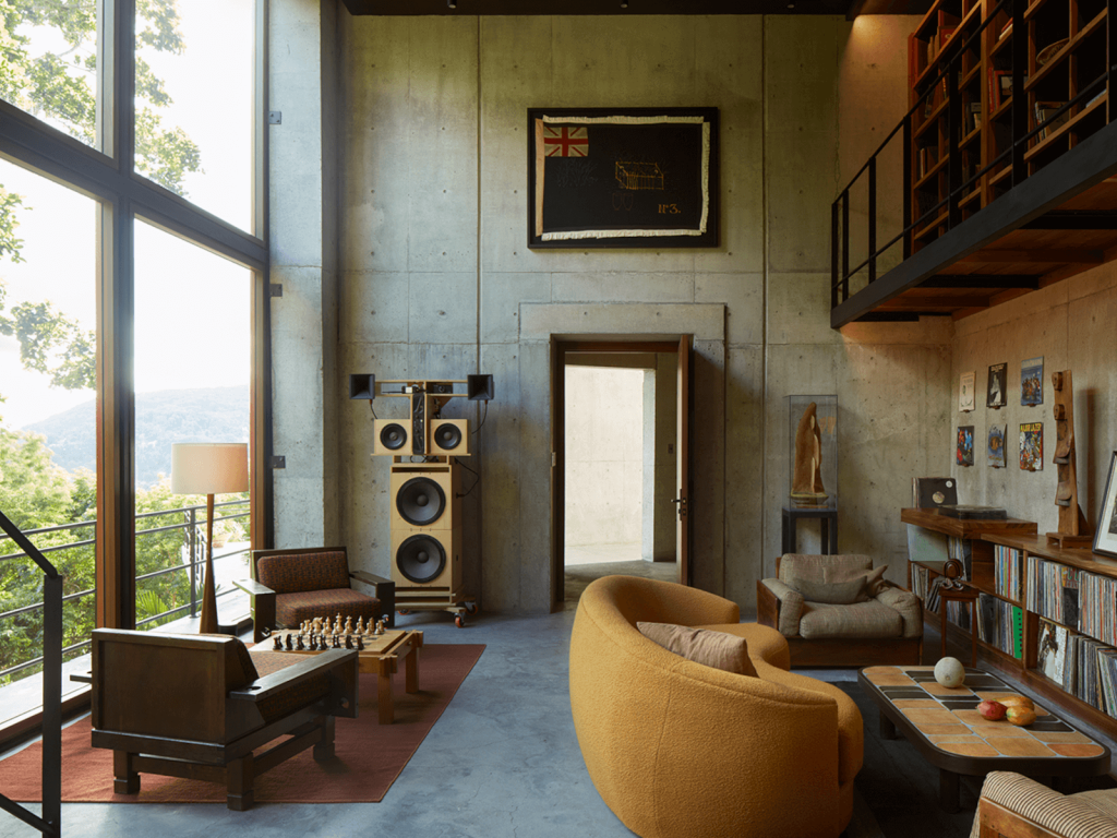 Diplo’s Jamaican pleasure dome is a harmonious blend of nature and design, featuring Glant Congo fabric in Aubergine/Cinnamon.